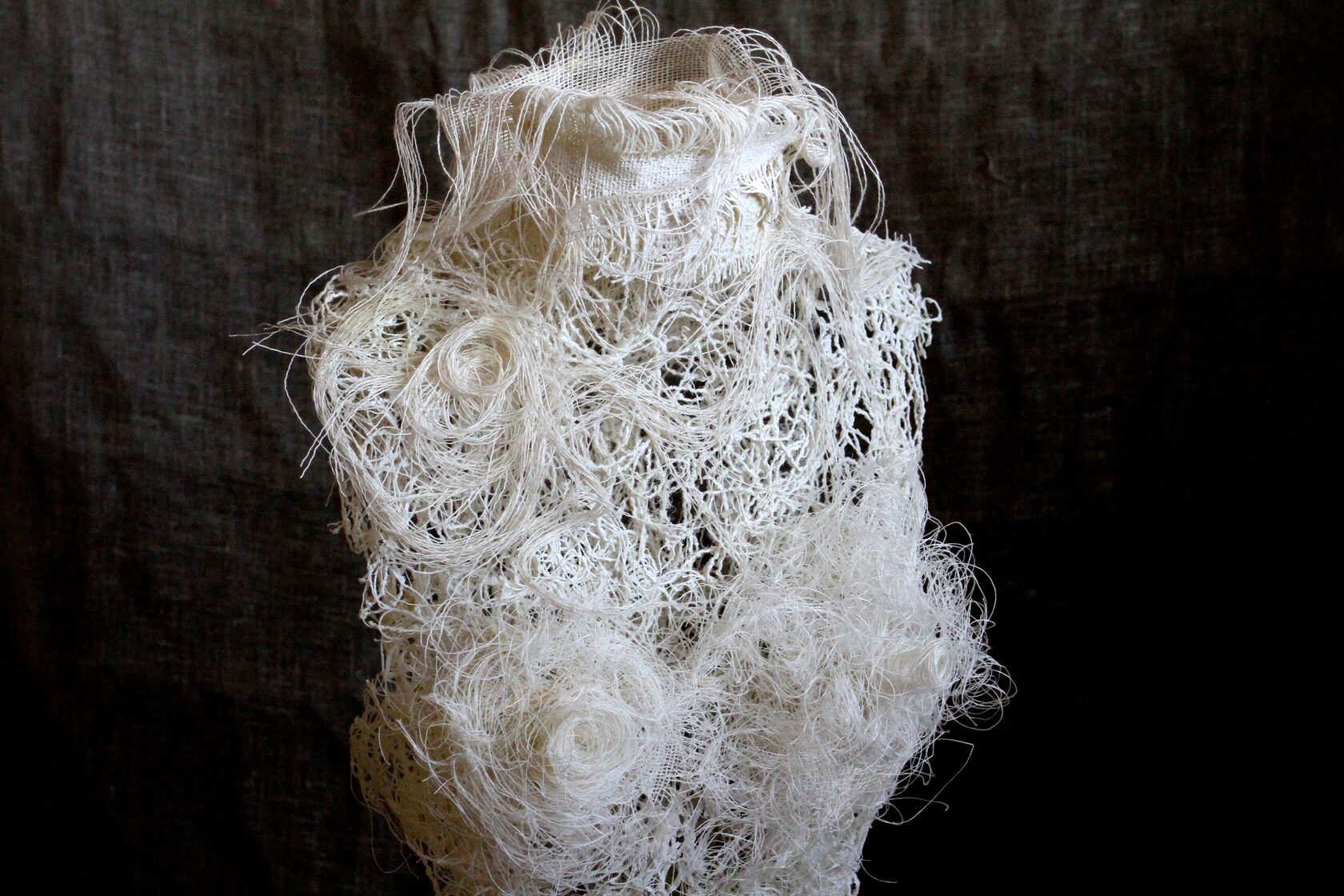 Scultura tessile "Forza. La Serendipity della Forma" è un viaggio nel paradosso della Creazione. La forza è potenza, ma anche vulnerabilità. La materia è rigida, ma anche cedevole. In ogni crepa nasce una nuova possibilità.